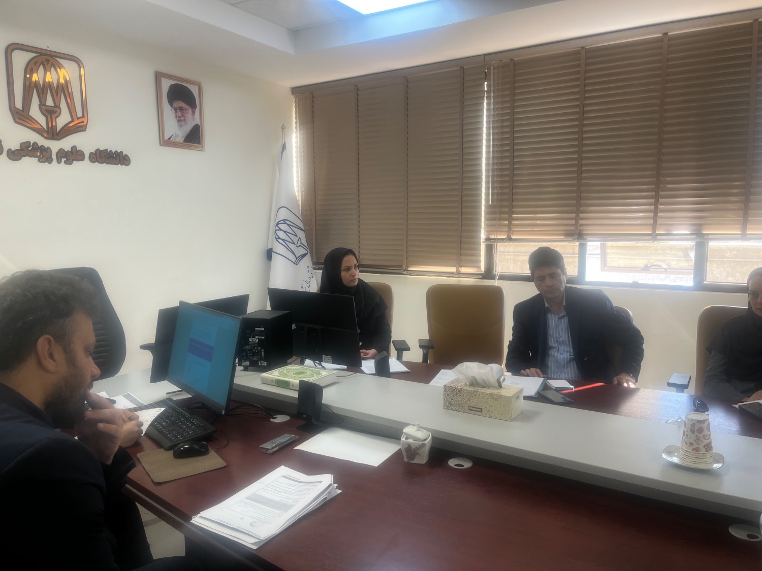 جلسه شورای آموزشی دانشکده پزشکی با حضور سرکار خانم دکتر بقیعی، سرپرست دانشکده پزشکی، خانم دکتر موسوی، رئیس EDO دانشکده پزشکی، خانم باطانی، مدیر امور دانشجویی، خانم نادری، رئیس اداره مشاوره به همراه کارشناسان این اداره و جمعی از اساتید هیئت علمی برگزار شد.